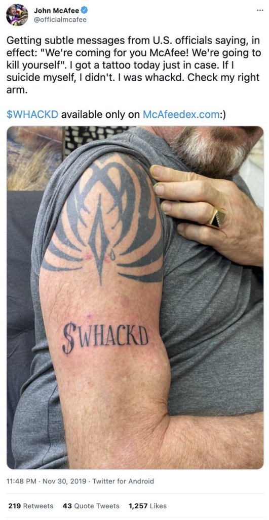 Mainstream News Sources state John McAfee “committed suicide”, although direct evidence suggests otherwise. Twitter has even started a hashtag #McAfeeDidntKillHimself, #McAfeeDidntEpsteinHimself, and #McAfeeDidntUninstallHimself. This theory [that he was killed] comes from his twitter posts he made while in prison, in which he stated he didn’t want to die. He leaves behind his wife Janice Dyson.