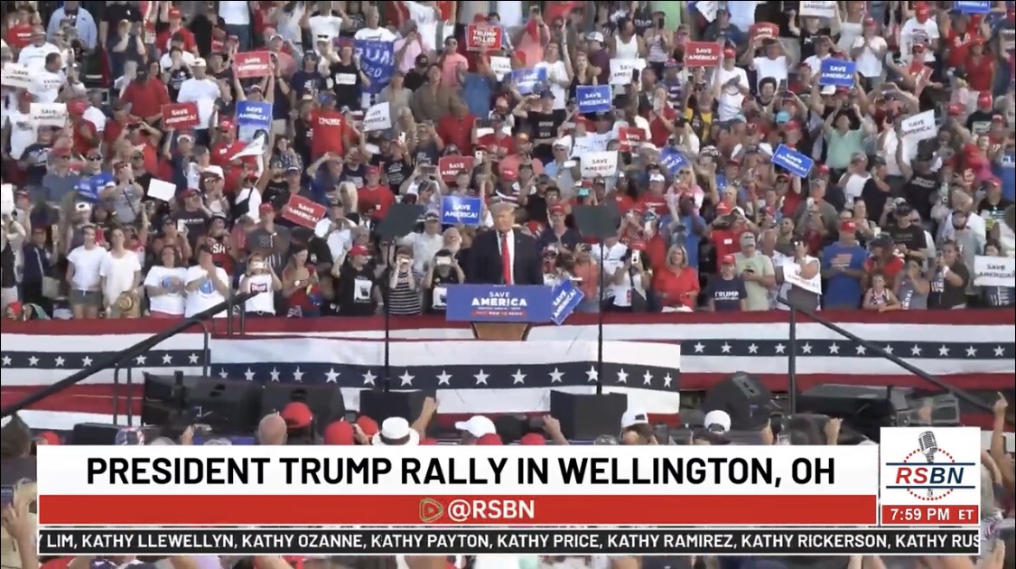 Former President Donald Trump spoke out at his first major rally since leaving the White House on Saturday in Wellington, Ohio. He spoke against Joe Biden, the radical left, illegal border crossings (up 976%) and called for our constitutional rights to be restored to the American people. His powerful words brought hope to Americans currently subjected to the alt-left agenda.
