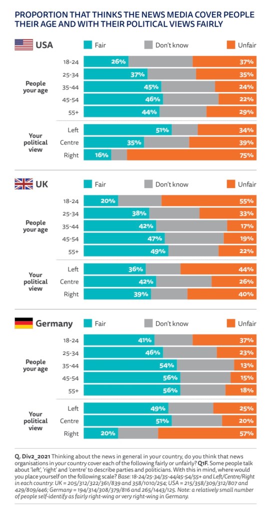 Increasing with age, it seems older generations consider news regarding political views more “fair” than younger generations. This could mean that people care less with age, or become more neutral on political viewpoints. Alternatively, it could mean the younger generation utilizes more technology, ultimately consuming and engaging in more News and Media than older generations with jobs, lives, families of their own, and other life demands.