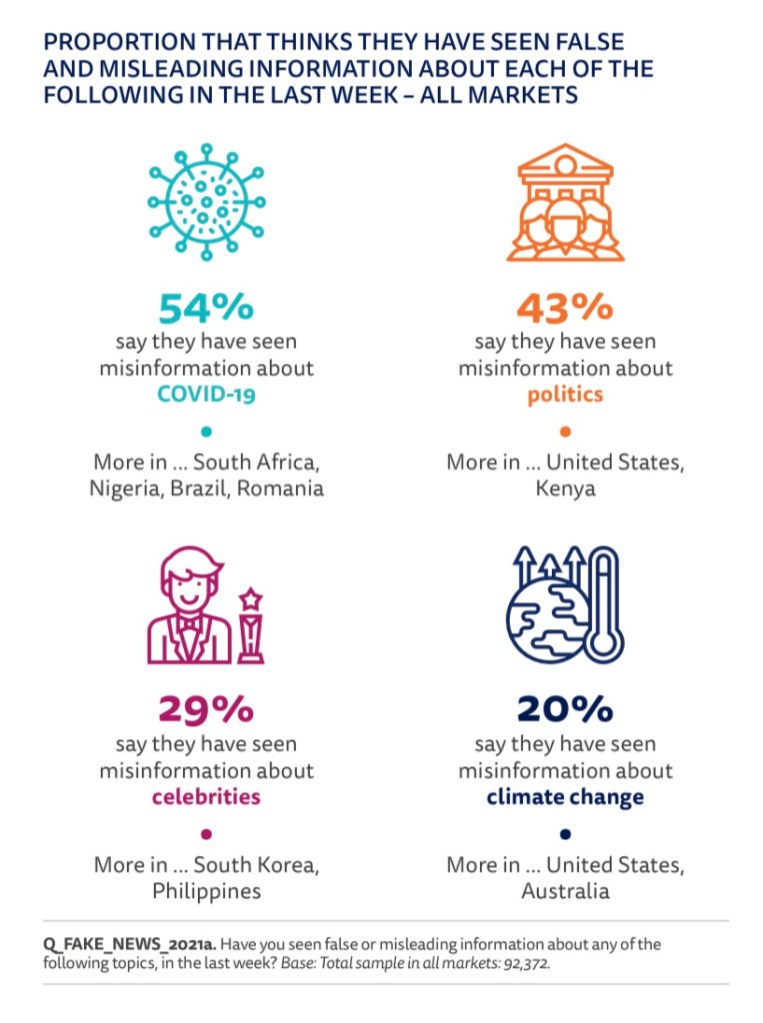 29% rightfully have seen misinformation about celebrities, as many News Outlets gossip about celebrities to create engagement.