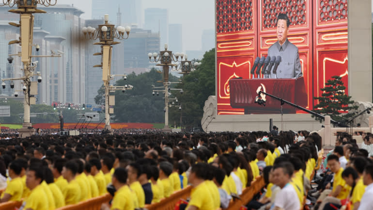 “The Chinese people have never bullied, oppressed or enslaved the people of other countries,” Xi said. “It has never done so in the past, does not do so now and will never do so in the future. At the same time, the Chinese people will never allow any outside forces to bully, oppress or enslave us. Anyone who tries to do so will be crushed to death before the Great Wall of steel built with the flesh and blood of over 1.4 billion Chinese people,” Xi warned as a large crowd cheered.
