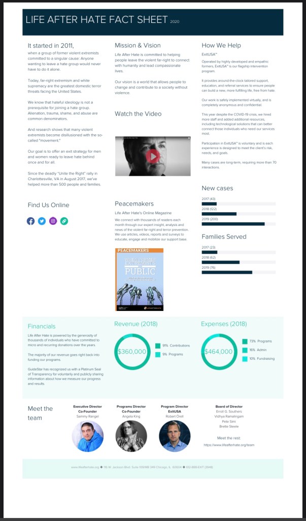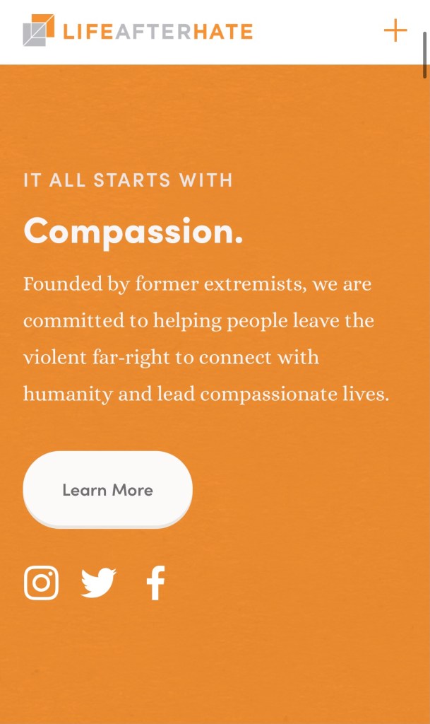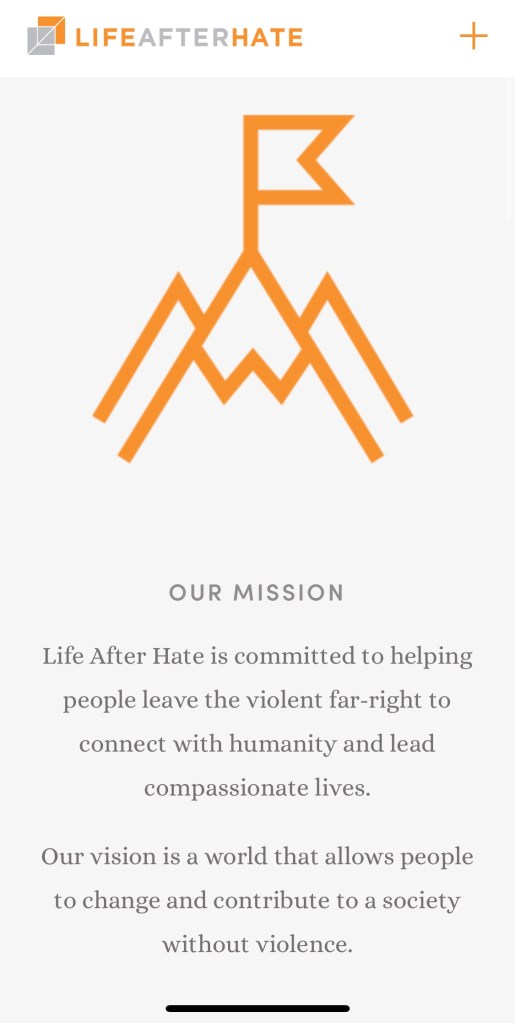 “Our Mission -Life After Hate is committed to helping people leave the violent far-right to connect with humanity and lead compassionate lives.”