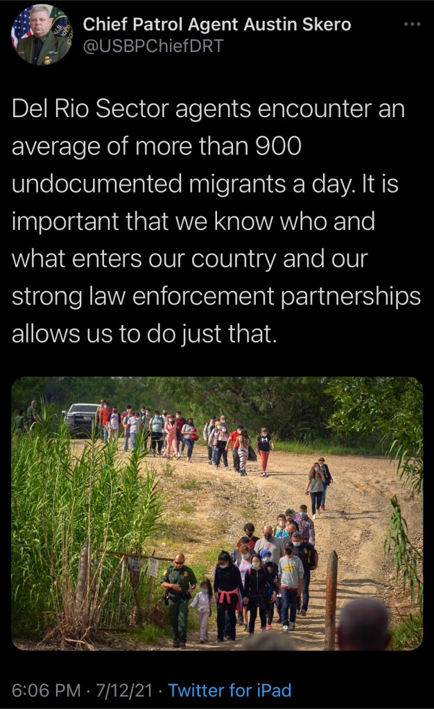According to Chief Patrol Agent Austin Skero stated, “Del Rio Sector agents encounter an average of more than 900 undocumented migrants a day. It is important that we know who and what enters our country and our strong law enforcement partnerships allow us to do that.”