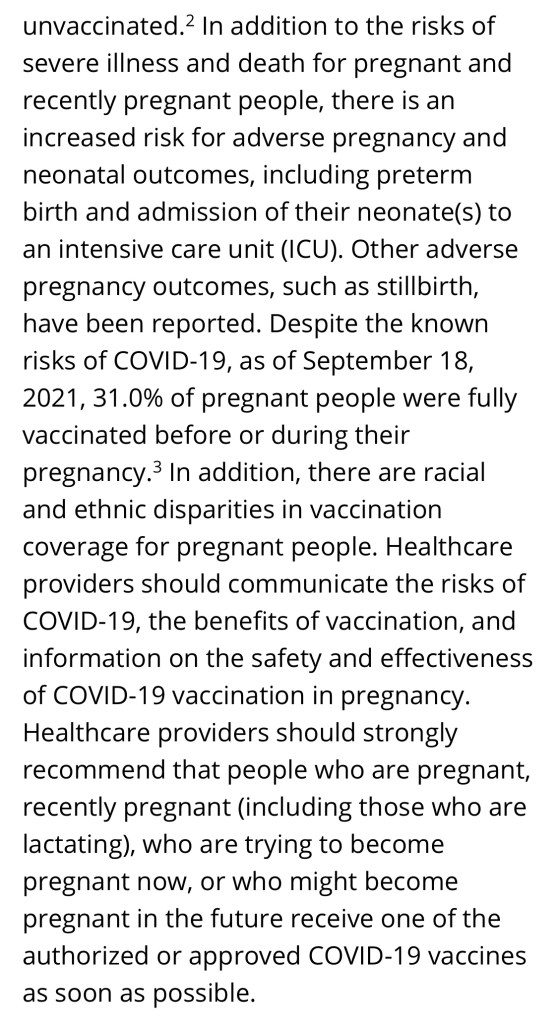 “Pregnant people with symptomatic COVID-19 have a 70% increased risk of death. Only 31% of pregnant people have been vaccined against COVID-19” – @CDCgov