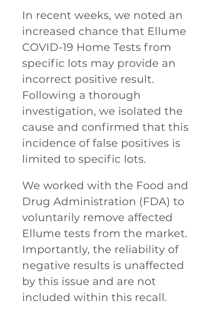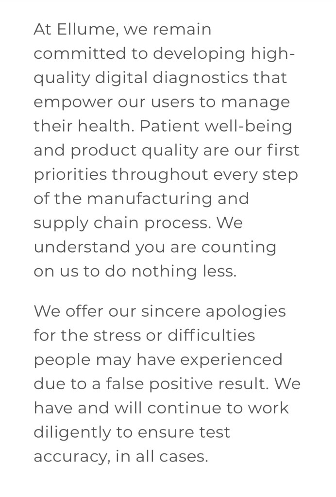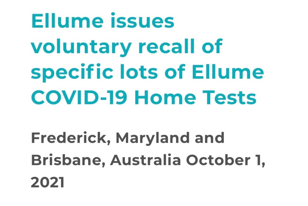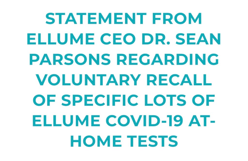 Ellume’s CEO issued a statement in regards to the “voluntary” recall of their faulty testing devices.