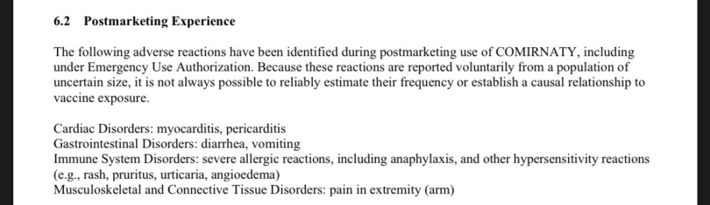 Despite this disclaimer, COMIRNATY has already begun marketing their product to ages 12-16 years, under emergency use authorization. Comirnaty’s public website states “the vaccine is authorized for ages 12 years & up”. The company continues to experiment on children ages 5-11 years old to test side effects in Clinical Trials.