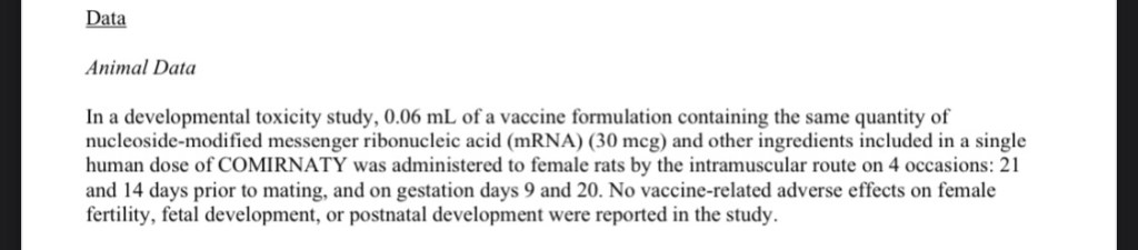 Where does the data to support suggestions for pregnancy come from? Injecting a single dose into rats, on four occasions. (two prior to mating, two while pregnant) The pamphlet reads, “No vaccine-related adverse effects on female fertility, fetal development, or postnatal development were reported in the study.”