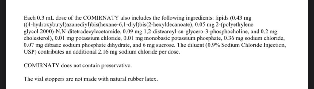 Each 0.3 mL dose of the COMIRNATY includes the following ingredients: