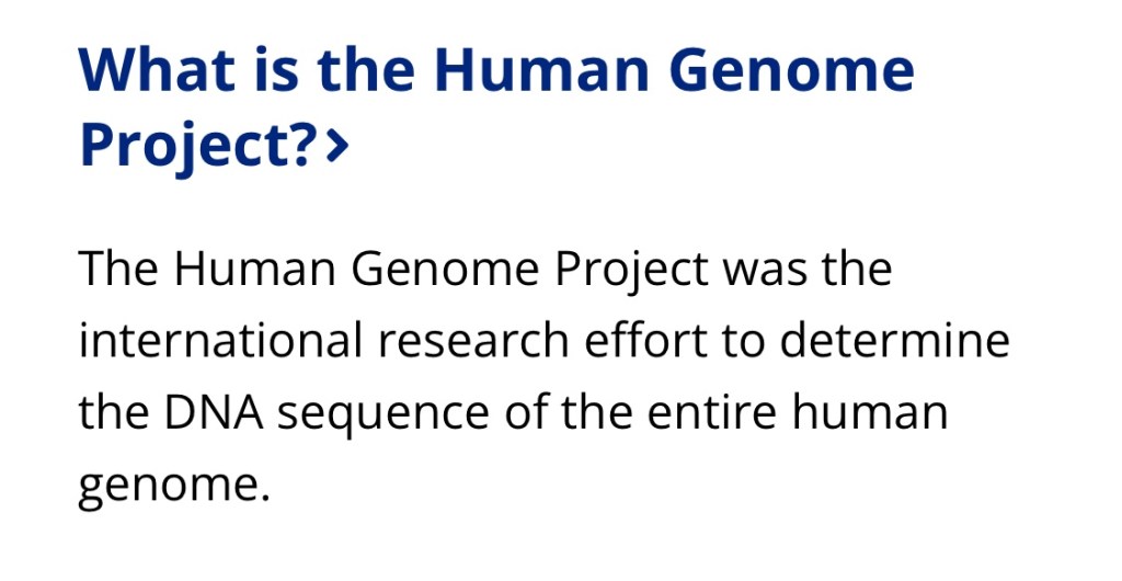 “The Human Genome Project was the international research effort to determine the DNA sequence of the entire human genome.”