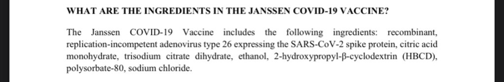 What are the ingredients inside the Johnson & Johnson coronavirus injections?