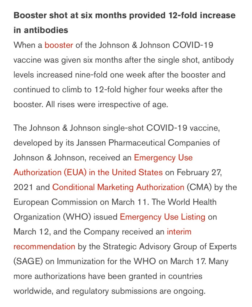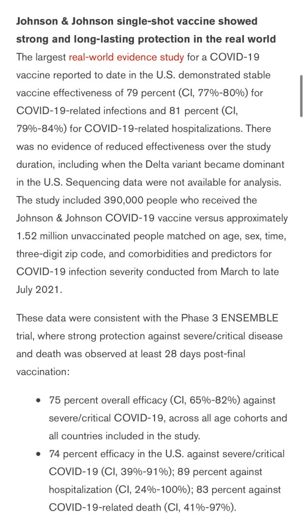“Johnson & Johnson remains committed to helping end this pandemic as quickly as possible and is committed to diligently generating and evaluating real-world evidence, as well as evidence from its ongoing clinical trial program.”