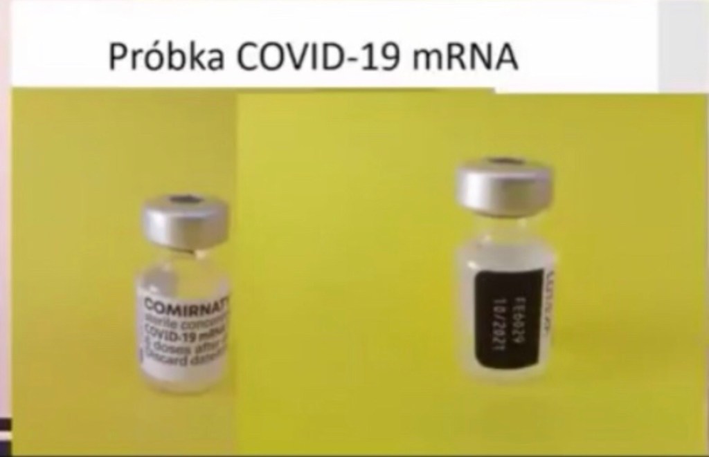 “This is the brand that is manufacturing this ‘healing potion’ for our happiness and well-being. [shows slide of Pfizer vaccines]. This is from this brand.”