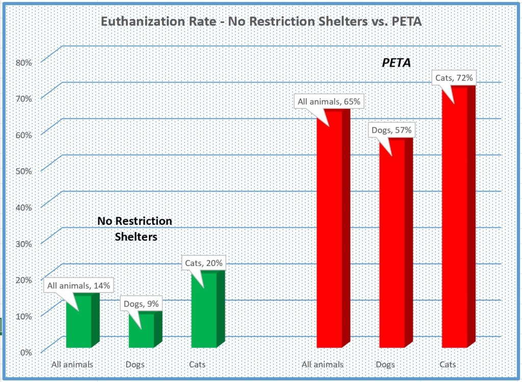 Data taken from The Virginia Department of Agriculture and Consumer Services (VDACS) in 2019 shows PETA’s kill rate is: