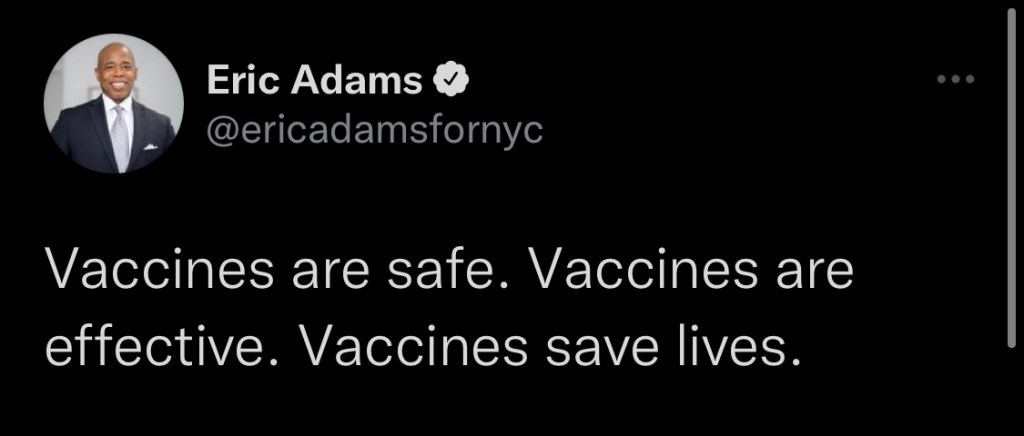 While the city’s vaccine mandates will remain enforced under his reign, New Yorkers hope Eric Adams will be an improvement over the city’s former corrupt mayor Bill de Blasio.