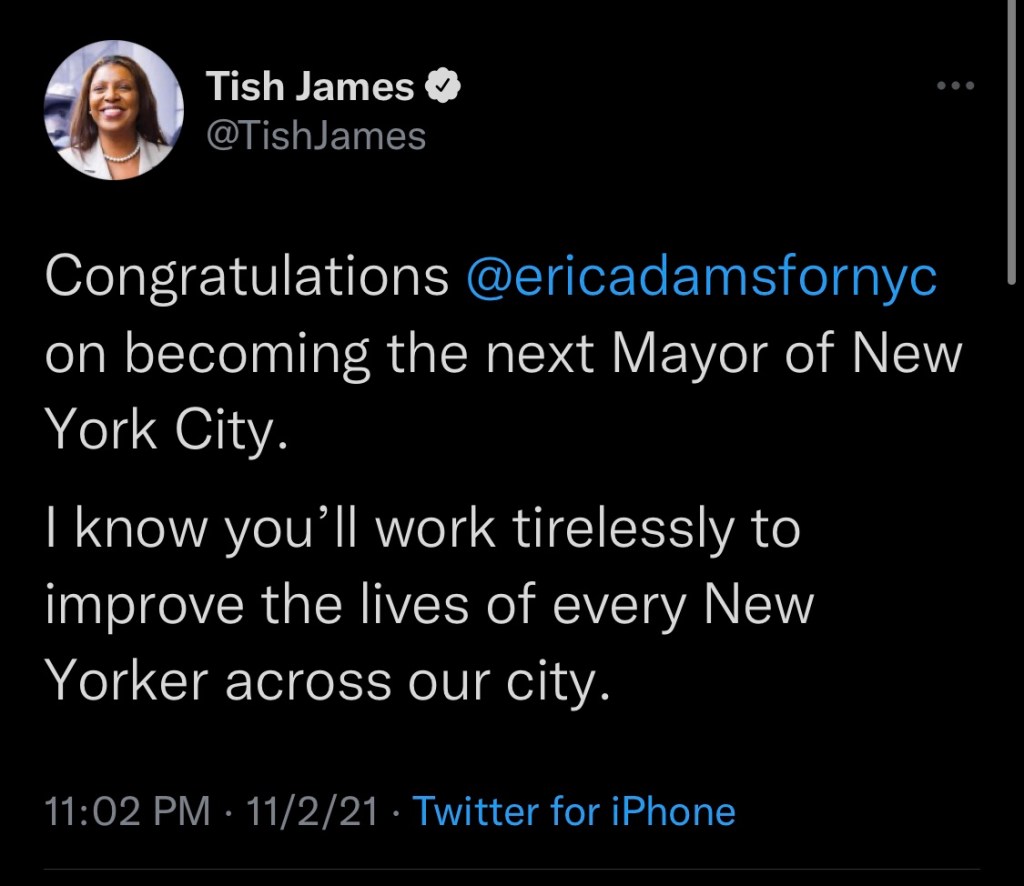 Latisha James, NYC attorney general and the lead investigator in Cuomo’s sexual harassment investigation, tweeted her support for the New York Mayor.