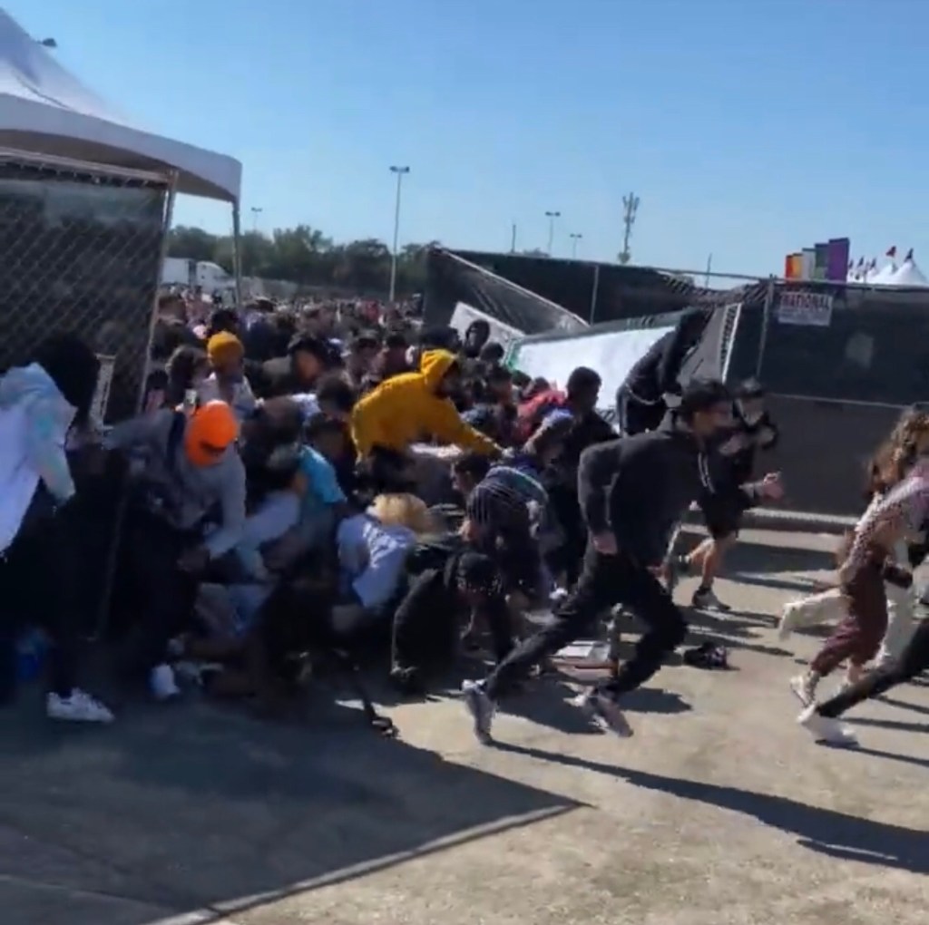 The crowd stood in anticipation under the Texan sun. As the doors opened, people began to rush in through the gates into Astroworld, creating a human stampede. People began to fall, as those behind them continued forward, trampling the fallen attendees. The crazed fans charged onward towards the stage barreling through security and knocking down the metal detectors.