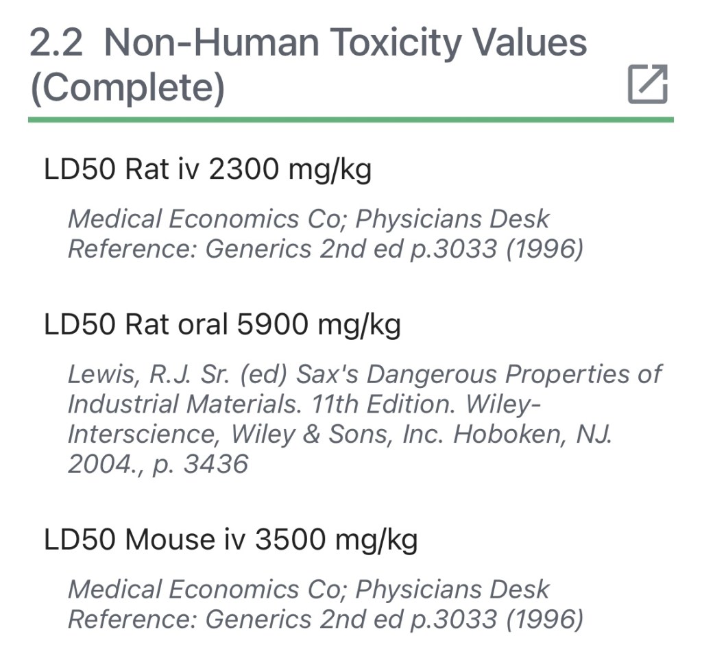 - https://pubchem.ncbi.nlm.nih.gov/source/hsdb/3408#section=Non-Human-Toxicity-Excerpts-(Complete)
