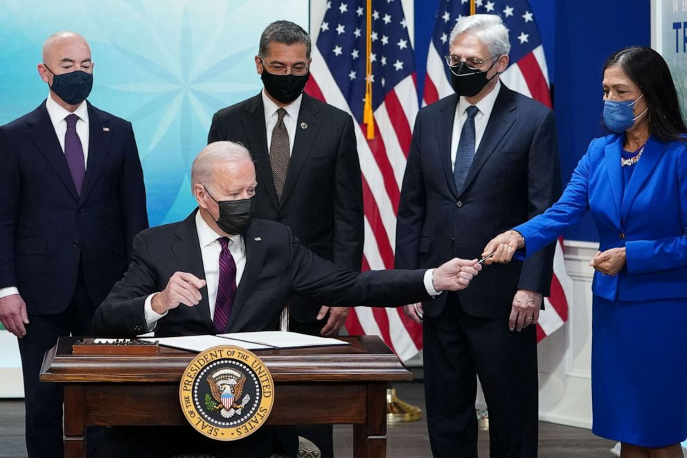 Joe Biden and his bloody finger signed the Executive Order on Improving Public Safety and Criminal Justice for Native Americans and Addressing the Crisis of Missing or Murdered Indigenous People on November 15th, 2021.