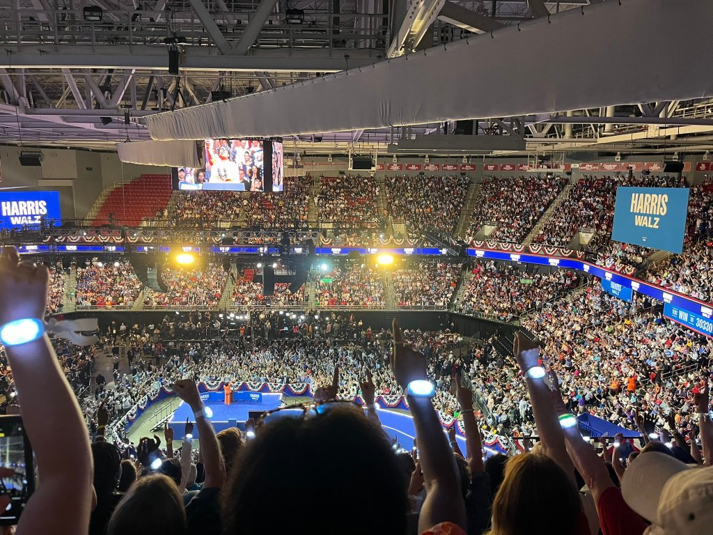 Below are photos that have surfaced across the internet of the rally. Not all of these photos are artificial intelligence, nor are all certified as valid. But they do propose an interesting position on public policy, and the necessity of regulation when it comes to new technology. It is also likely these images as distortions from the artificial intelligence technology in new cellphone cameras. But there remains a chance that these distortions are the results of artificially enhanced photos to increase Kamala Harris’s appearance of popularity. Here, you can (and must) judge for yourself. Two photos taken of selfies reveal the emptiness of the stadium, although it was likely a different point than the other photos. Also, it is worth noting, the “AI tests” were not done by this publication, nor anyone affiliated with this report—therefore, its validity cannot be proven. Needless to say, these images have not been altered nor manipulated by this reporter or the publication in any capacity: