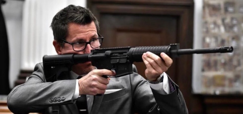 Kyle Rittenhouse Prosecutor Points Rifle at Courtroom, With Finger on the Trigger